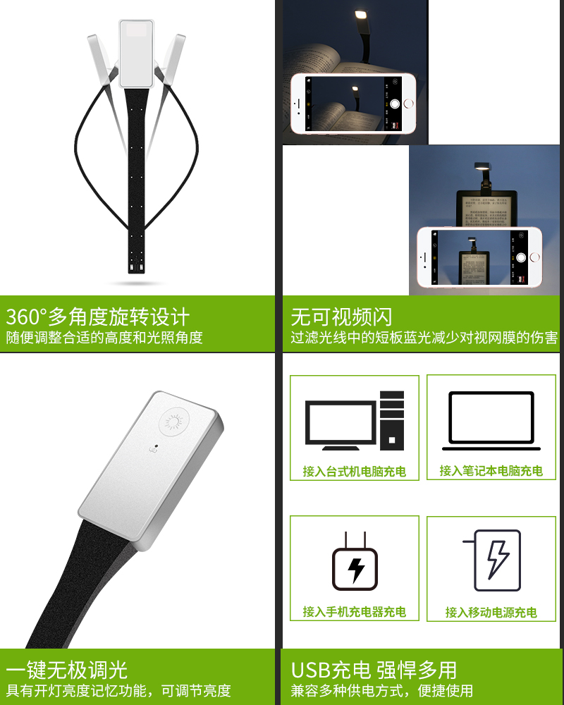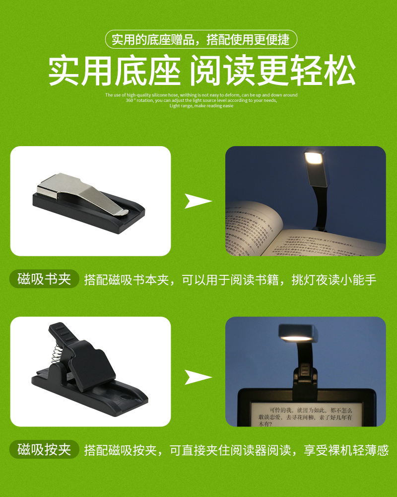 (Night Reading, Eye Protection) FCWM kindle reading light rechargeable night reading clip book lamp Portable mini folding led e-book 558 flatbed external dormitory bedside bedside bed lamp