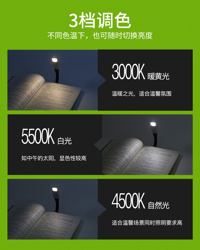 Three-speed color grading, no-polar dimming USB charging tips (send dual clip base) (365-day warranty)