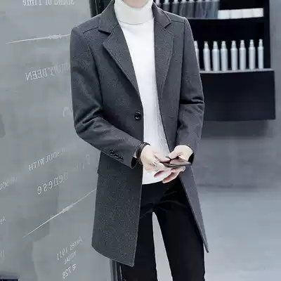 Autumn and winter wool coat men's medium and long version of the Korean version of the trend coat men's windbreaker British Nizi men's clothing