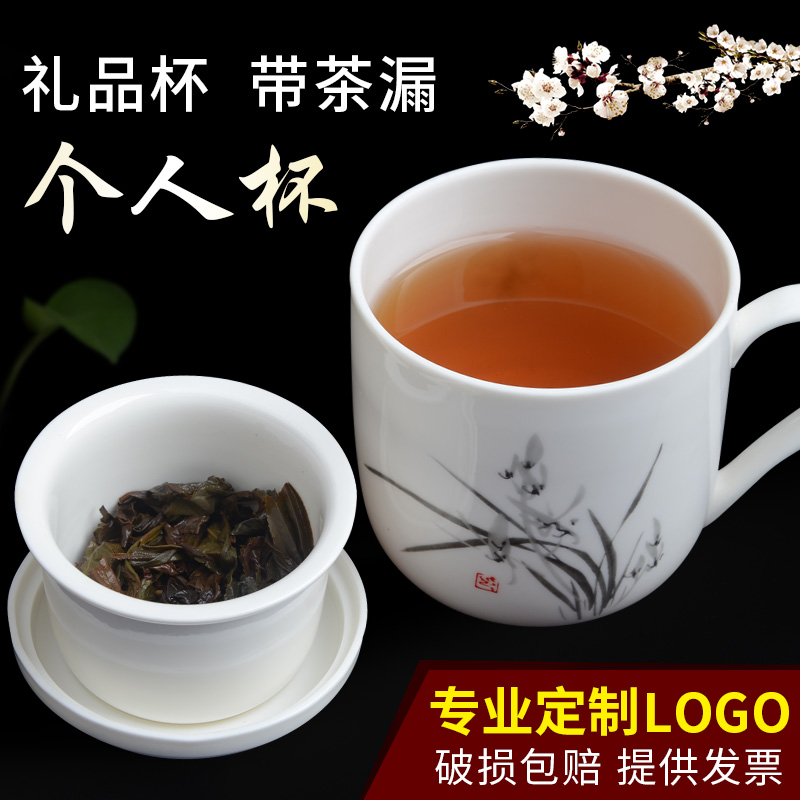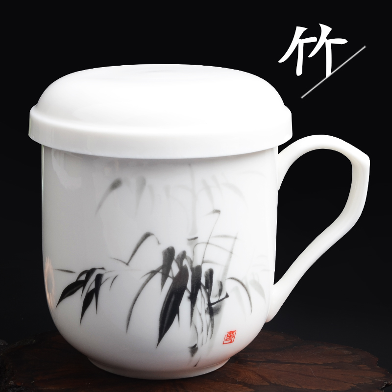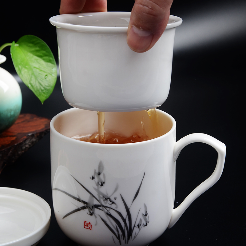 Xiangfeng white porcelain tea cup ceramic with lid and filter tea cup office water cup tea cup tea cup tea water separation household cup