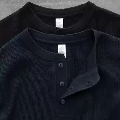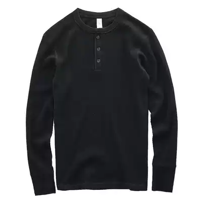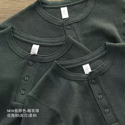 American replica 350g casual Henry shirt retro heavy TEE high quality waffle plain long sleeve T-shirt men