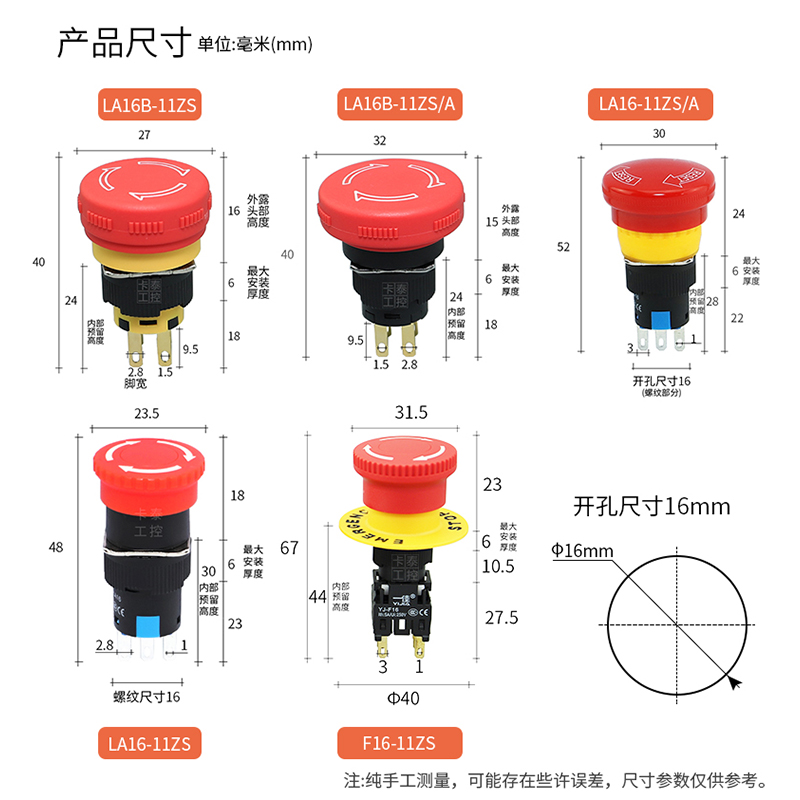 LA16-11ZS (small head) LA16-11ZS A (large head) F16-11ZS (head tail separable) LA16B-11ZS (short in small head) L