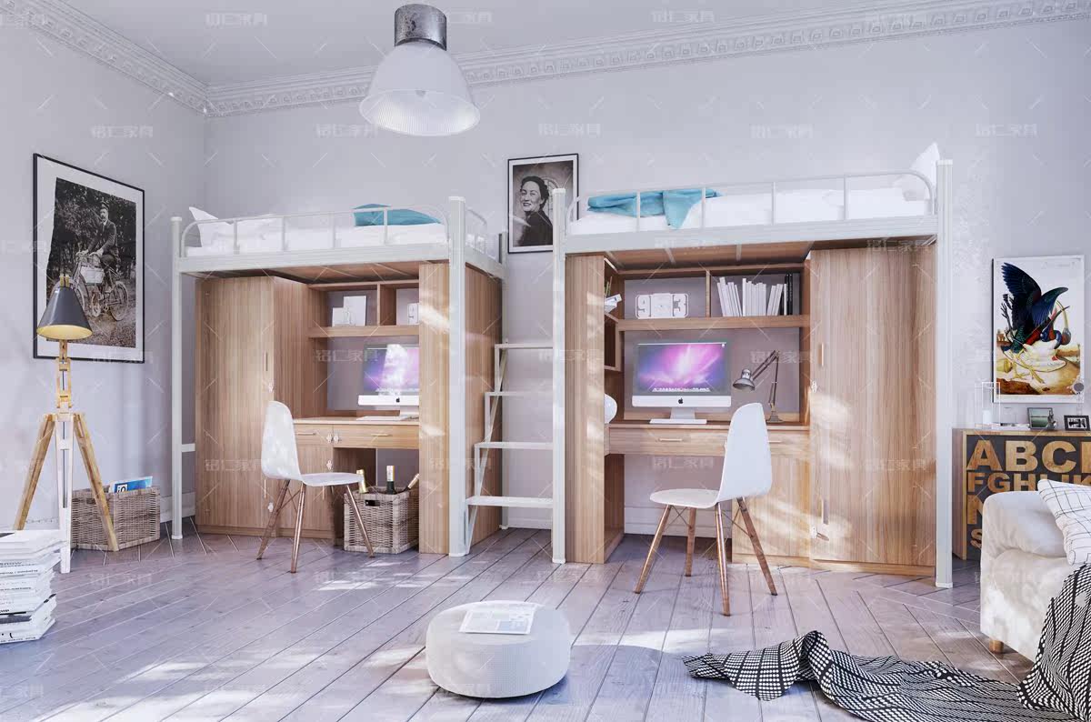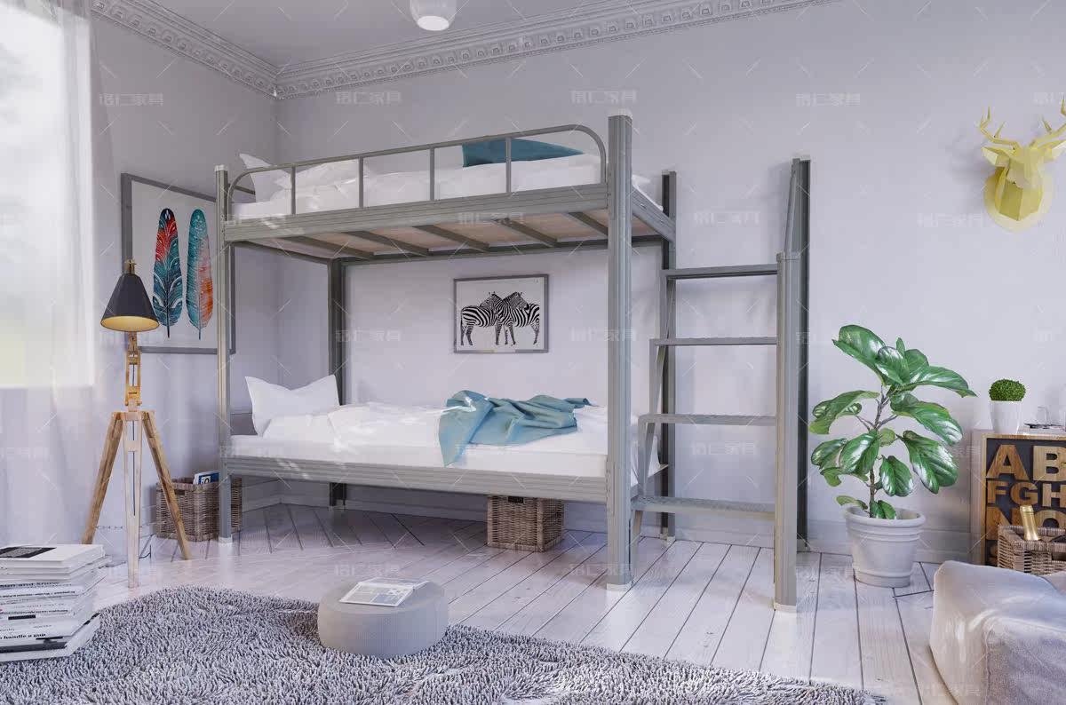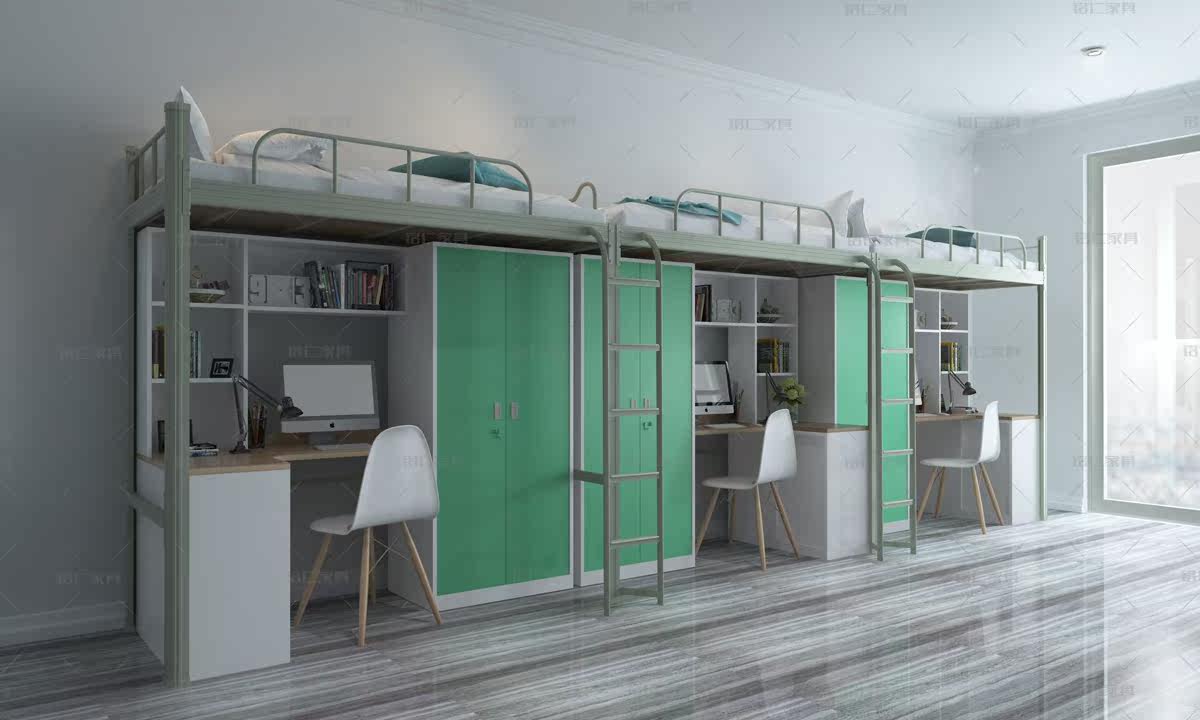 University dormitory apartment school company staff double-layer upper and lower with desk wardrobe wrought iron bed Shandong Qingdao