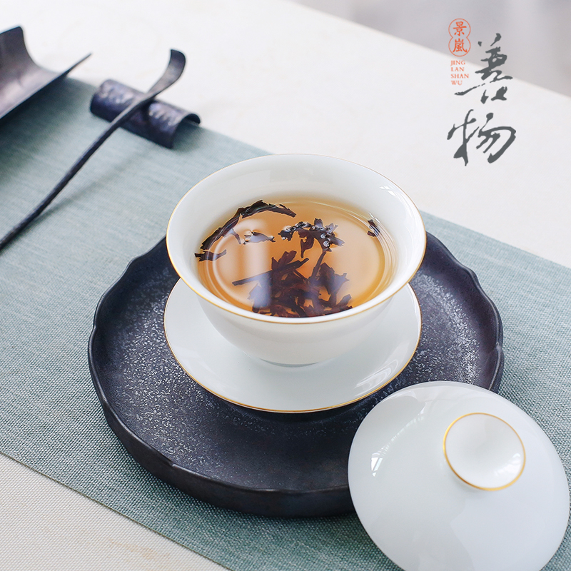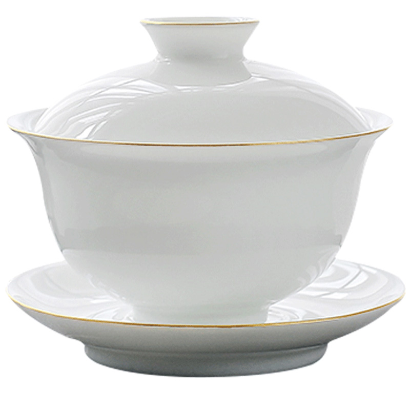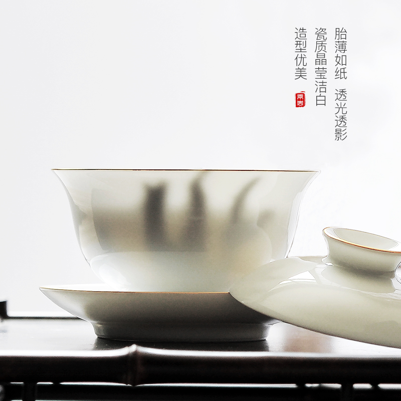 Handmade Sancai Gaiwan Teacup Tea Set Jingdezhen White Porcelain Thin Tire Ceramic Kung Fu Tea Bowl Set Home Large