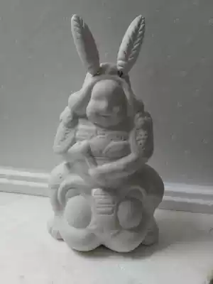 Old Beijing Rabbit Master large Xiangling tiger Rabbit Master traditional handmade plaster ornaments hand-painted white