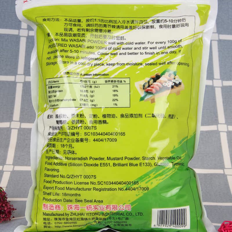 Wasabi Mixed Powder 1000g Green Wasabi Mixed Powder Wasabi Mixed Powder Japanese Cuisine