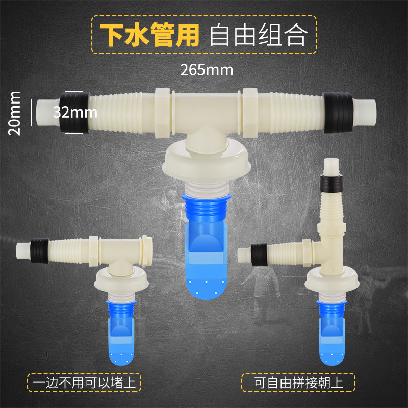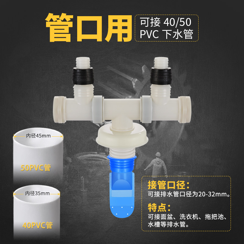 Two and three-way (for the sewer pipe) Three ports for the deodorant core (for the sewer pipe) Two direct connections for the deodorant core (for the sewer pipe)