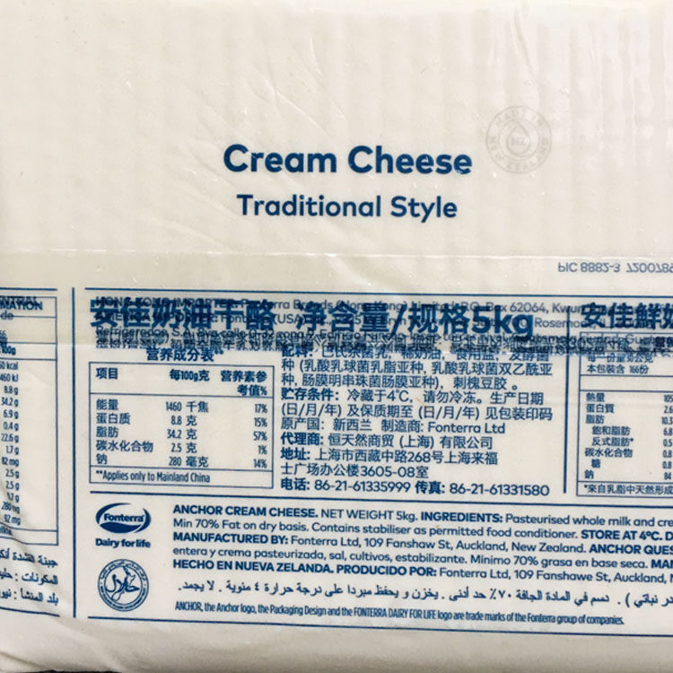 New Zealand Imports Anja Cream Cheese Cheesecake Raw Material Anja Cream Cheese 5kg baking raw material