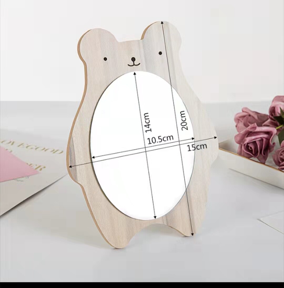Mirror Makeup Mirror Fold Desktop High Definition Student Dorm Room Princess Large Trumpet Desktop Cosmetic Mirror Cartoon Wooden Mirror