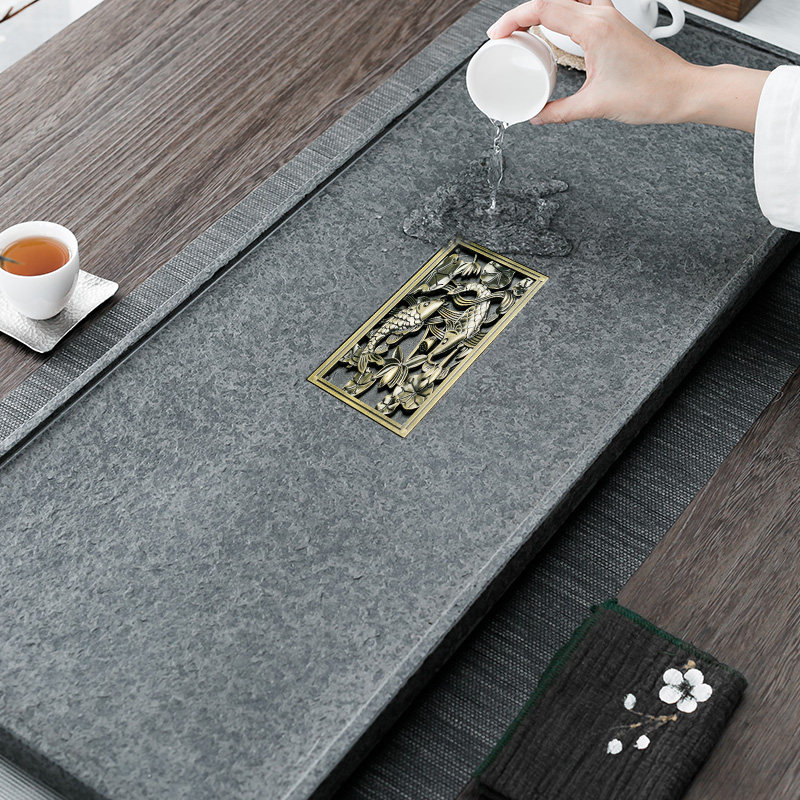Wu Jinshi tea plate Whole fire natural stone Simple rectangular tea table Household stone Kung Fu tea set tea sea