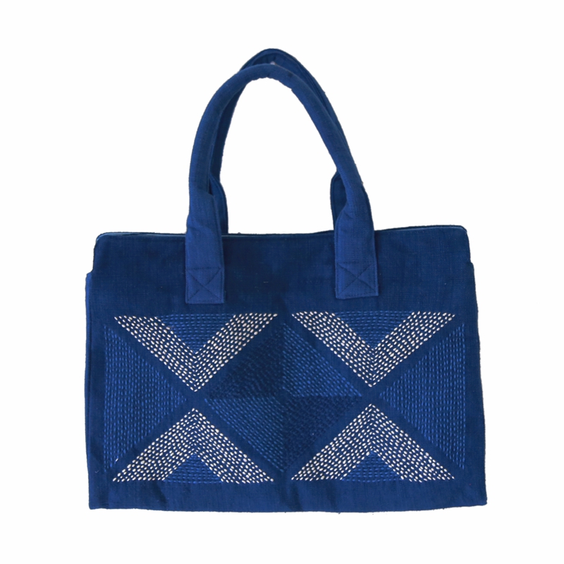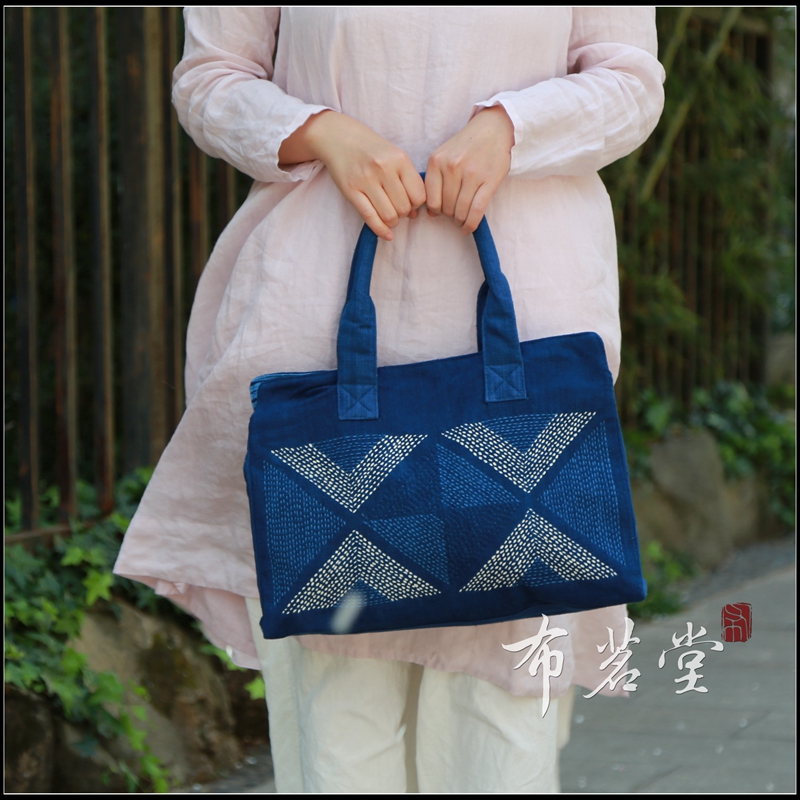 Cloth Mingtang handmade thorn heavy embroidery shoulder bag pure cotton hemp plant blue dyed cloth hand embroidery fabric bag