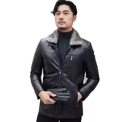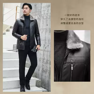 Bifili Haining lapel mink fur jacket leather men mink coat warm winter leather down WP