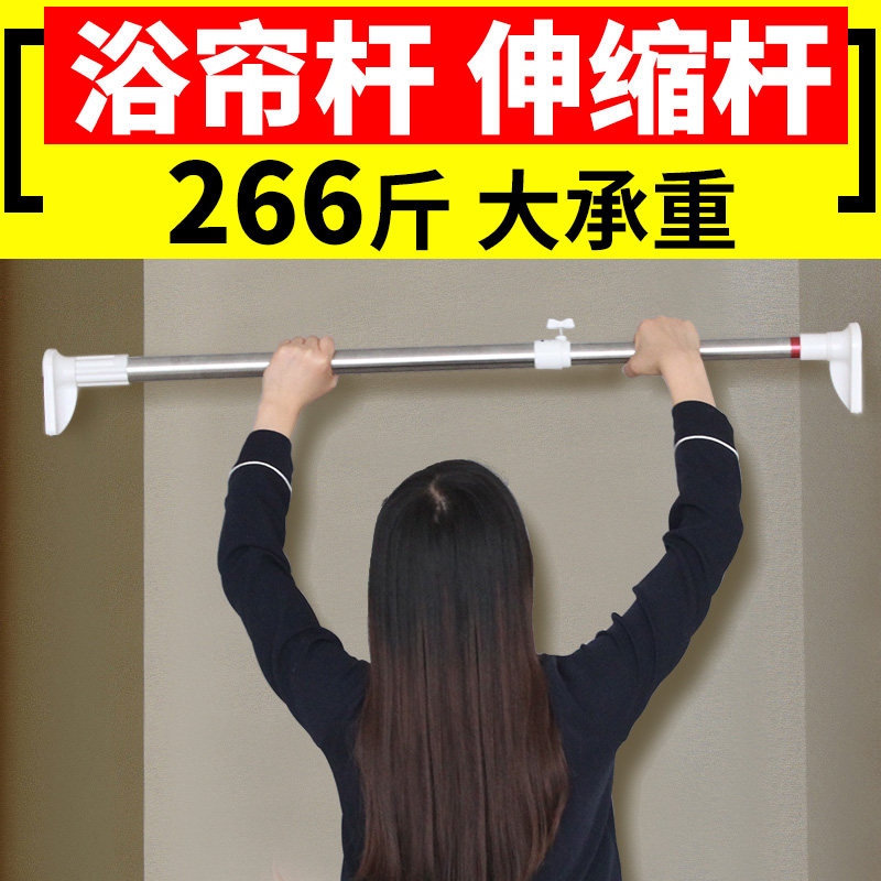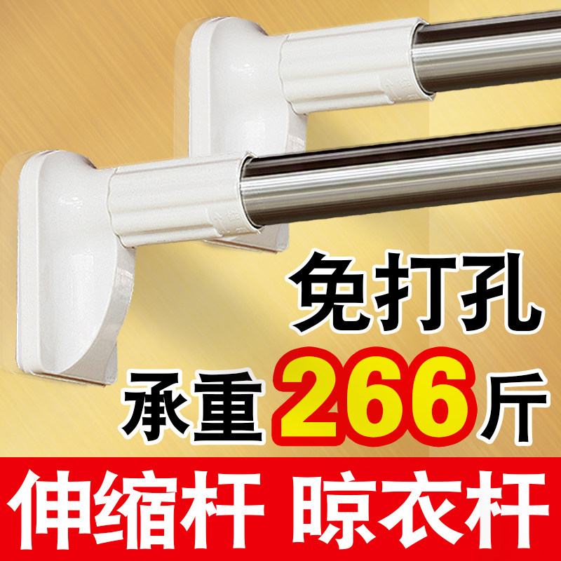 Clothes drying rod Telescopic rod hole-free cold wardrobe lifting rod Shower curtain rod Stainless steel curtain rod Balcony drying pole