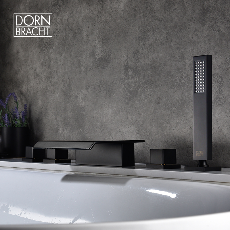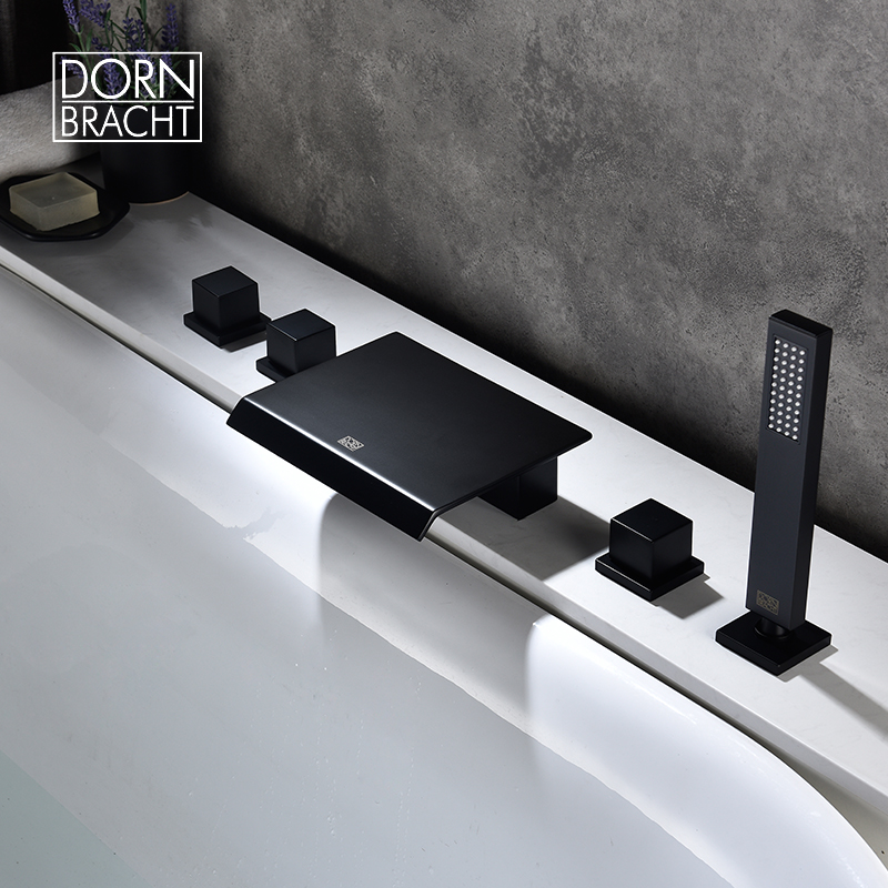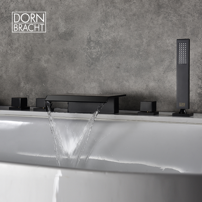 German five-hole bathtub five-piece bathtub side faucet waterfall water full copper black rain shower set