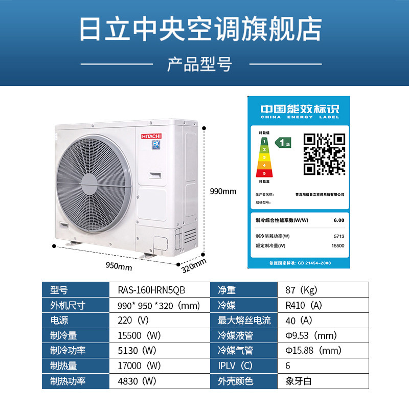 Hitachi household central air conditioning 6 horses one drag five frequency conversion three rooms two rooms cooling and heating multi-online RAS-160HRN5QB