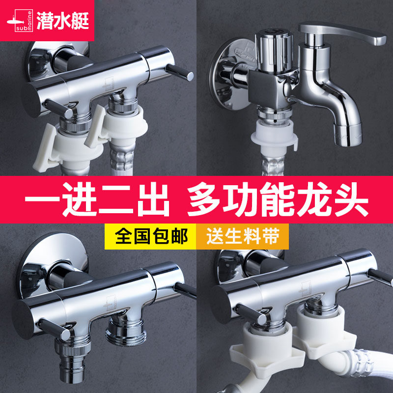 Submarine three-way corner valve one-two-way corner valve double out three-head one-in-two washing machine two-dip water