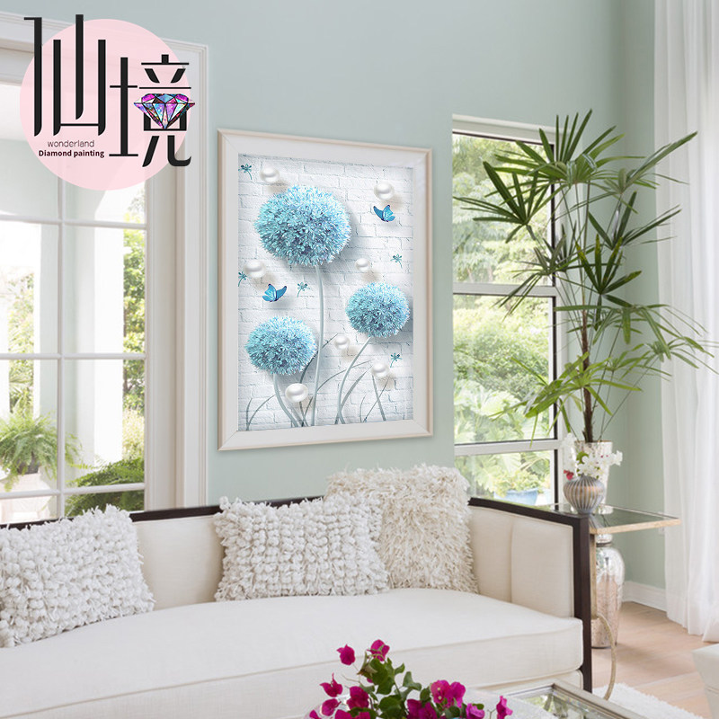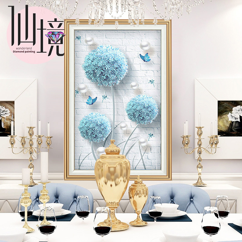 Diamond embroidered small flower diamond painting 2023 new living room point drilling cross embroidered with brick and stone painting bedroom vertical version-Taobao