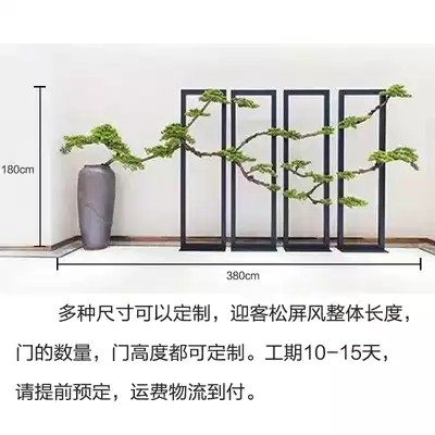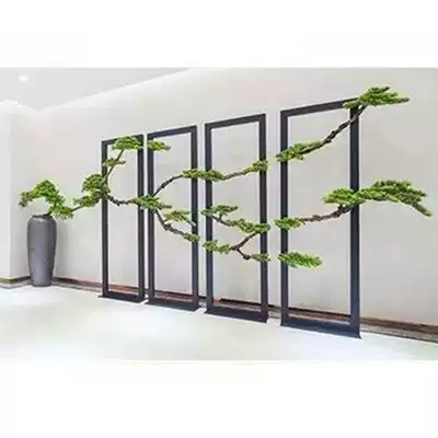 Large wrought iron screen welcome pine fake tree green plant high simulation bonsai withered landscape soft clothes and multiple floral landing