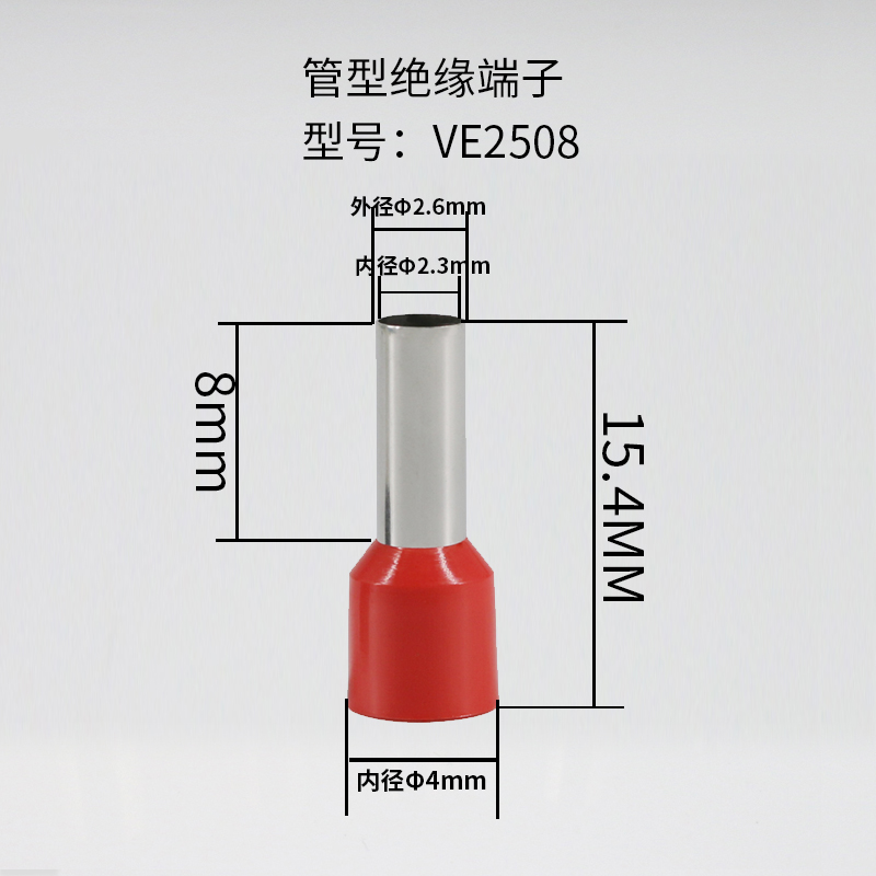 Red copper VE2508 Eurotype wiring terminal E2508 1000 only stylus tubular pre-insulated cold pressure end head