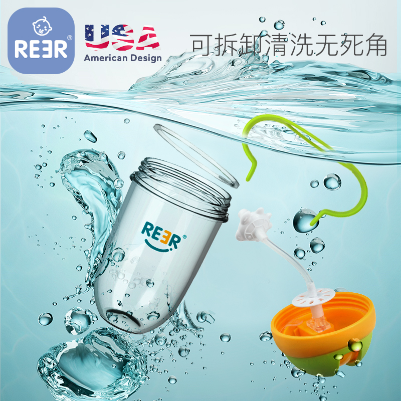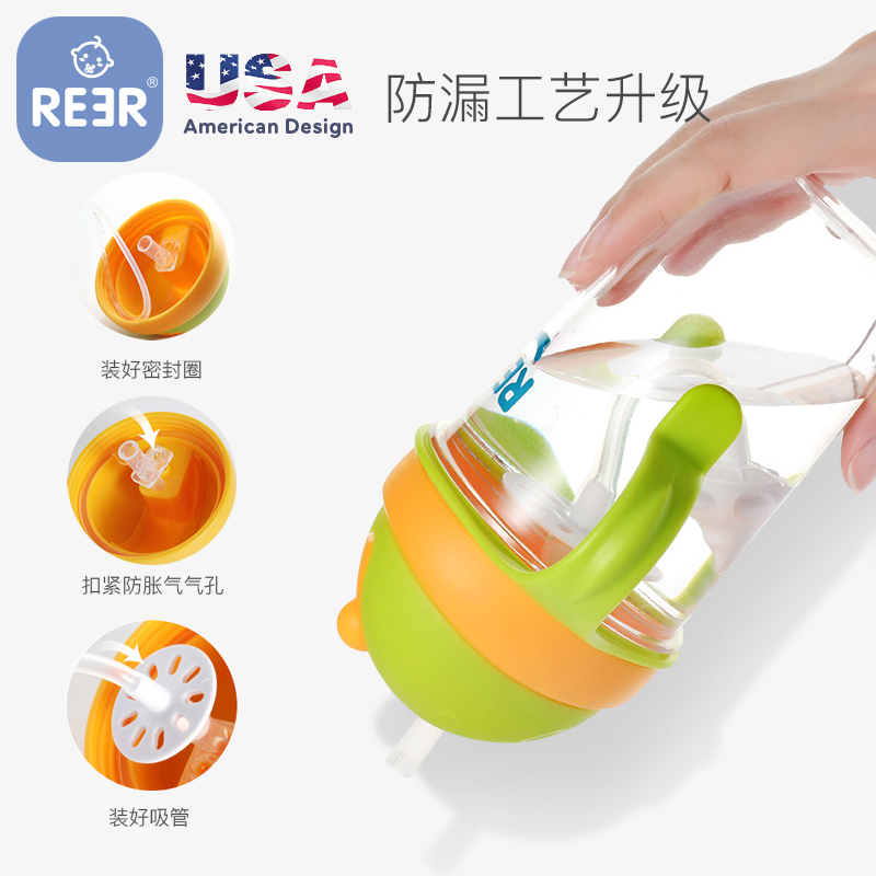 REER baby baby drinking cup 6-18 months anti-leakage and anti-choking tube Cup with kindergarten children anti-drop water Cup