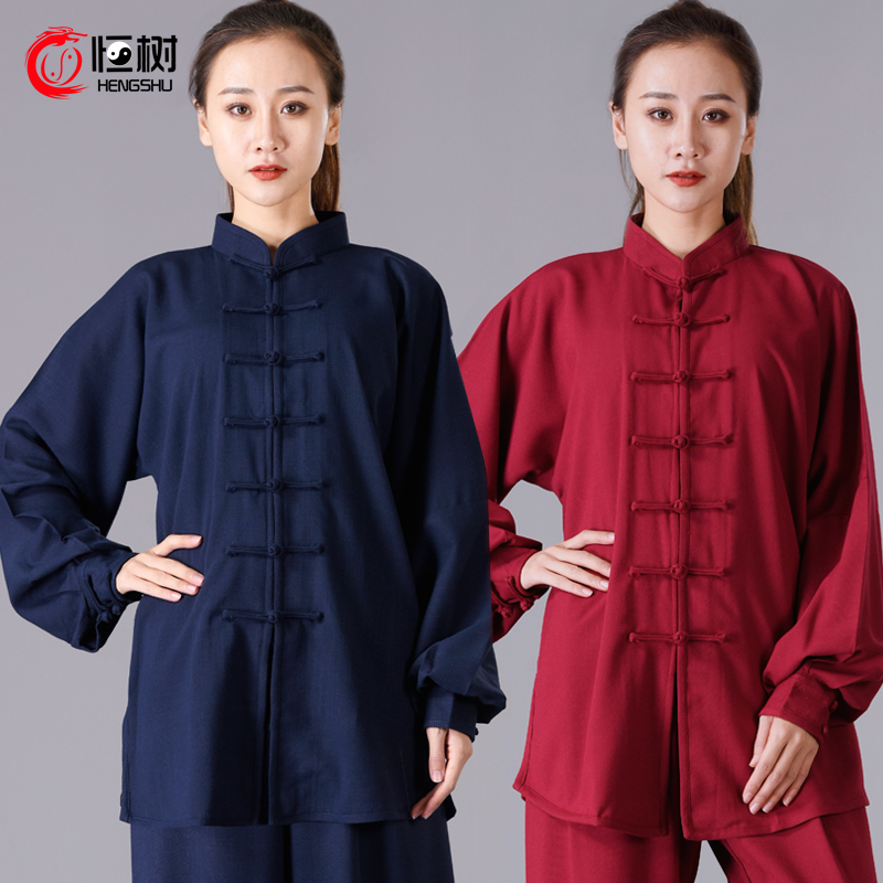 Hengshu Stretch Cotton and Hemp Tai Chi Clothing Female Autumn and Winter Chinese Style Kung Fu Tai Chi Training Clothing Male Martial Arts Performance Clothing