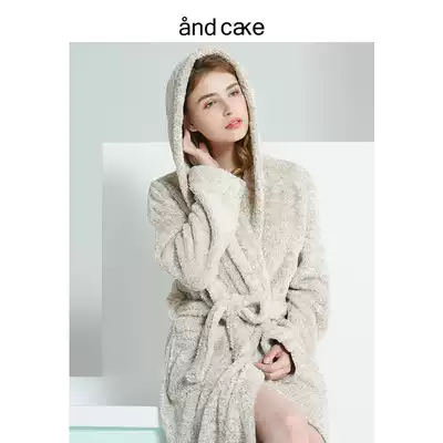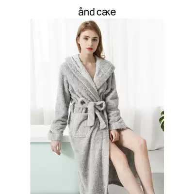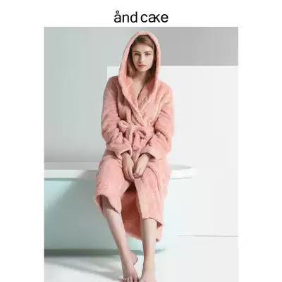andcake women's autumn and winter coral velvet hooded bathrobe women's flannel robe warm pajamas can be worn