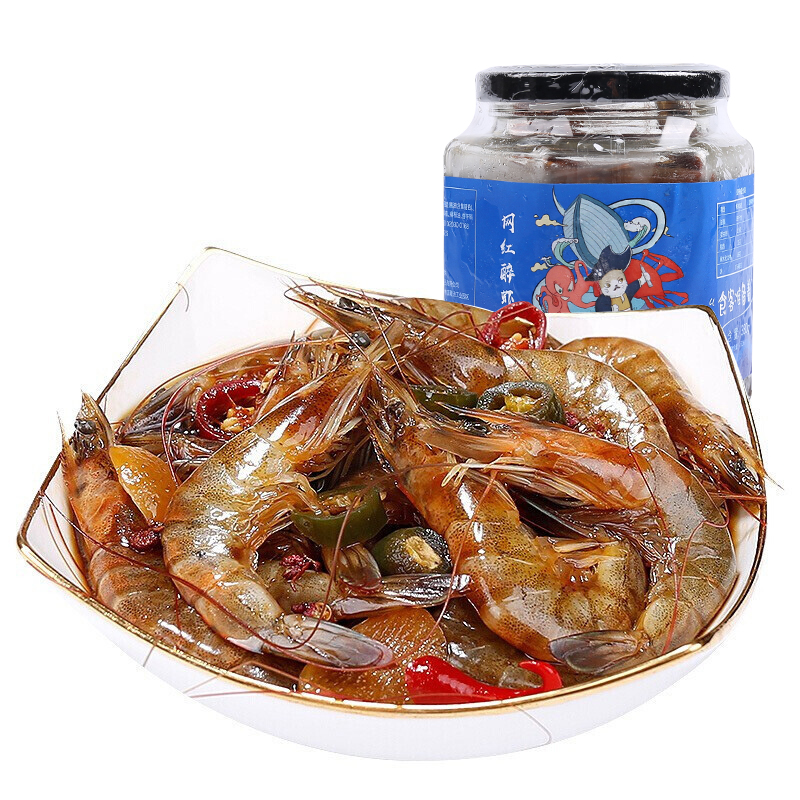 Net Red Drunken Shrimp 380g Ningbo Seafood Special Wine Drunkenness Marinated Sea Shrimp Ready-to-use Choking Prawns Canned Down Wine Snacks