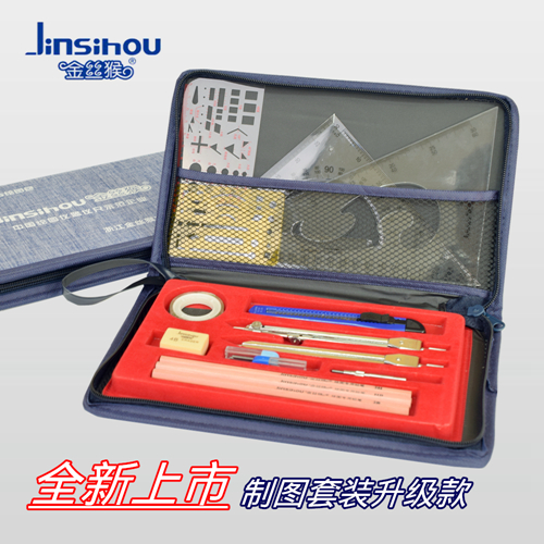 Gold Wire Monkey Drawing Bag Mapping Tool Suit Building Machinery Civil Engineering Students Professional Mapping Instruments Metal Compasses Triangle Ruler Composition Kit Upgrade sails bag