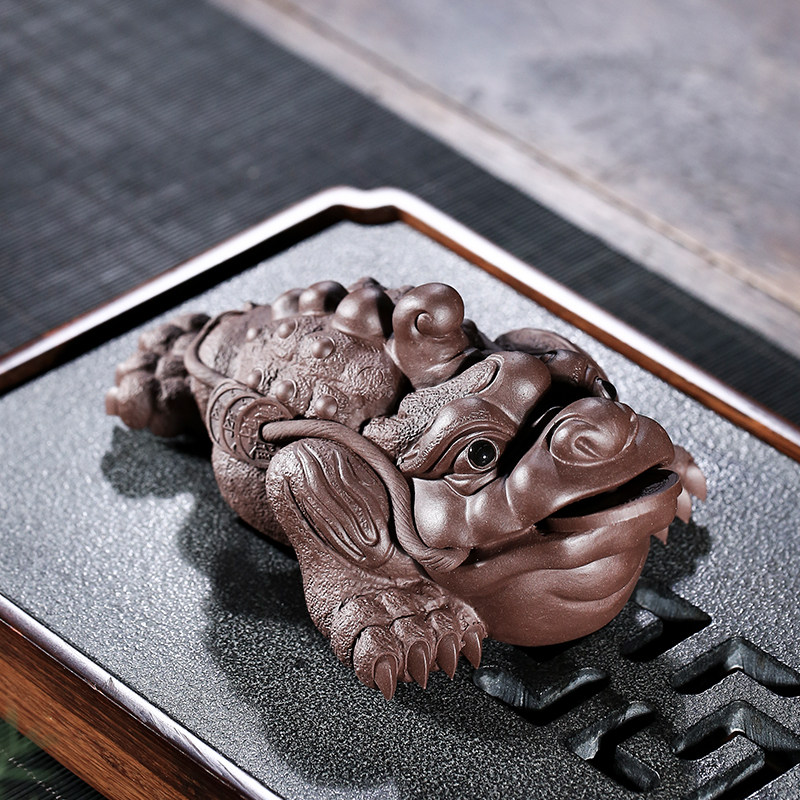 Tea pet purple sand golden toad ornaments boutique large purple mud toad tea play sculpture new product can raise Kung Fu tea accessories