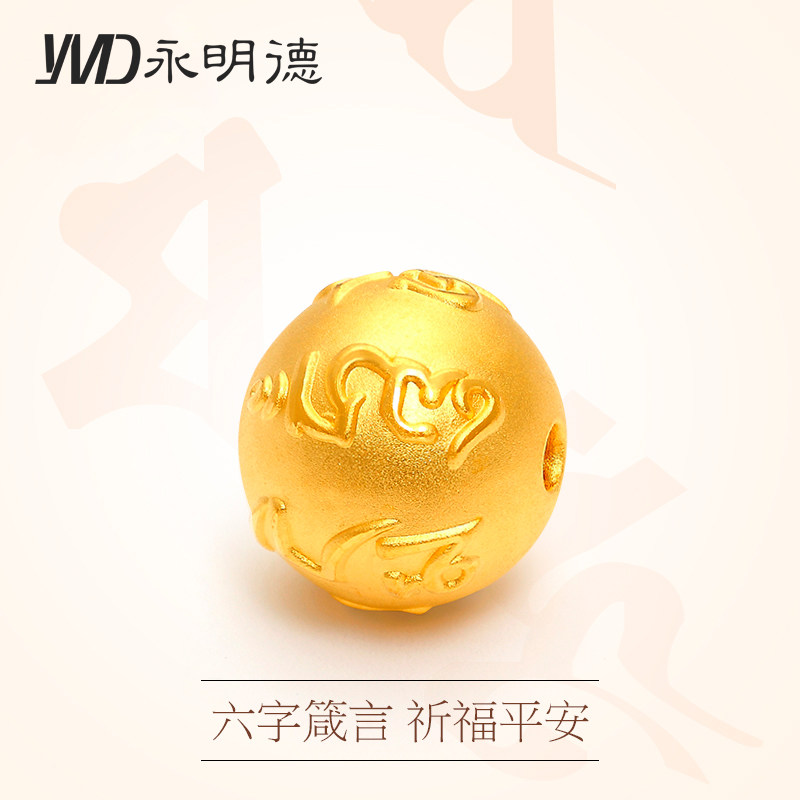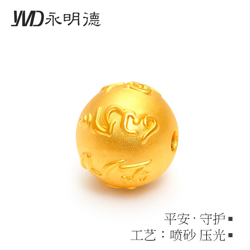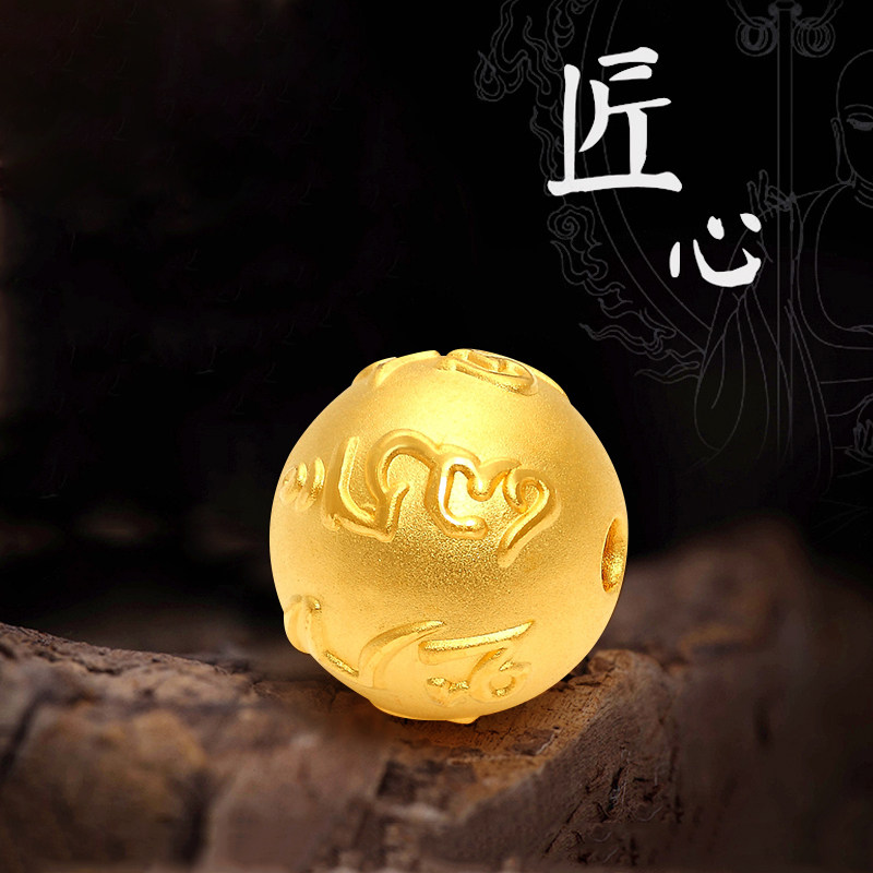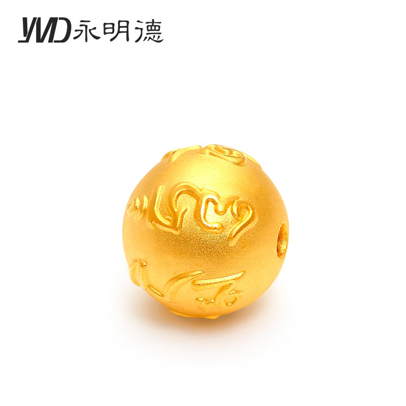 Gold transfer beads hand chisel male 3D hard gold Daming mantra six-character mantra gold beads pure gold 999 Lutong bracelet female