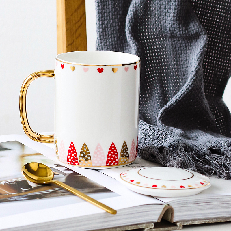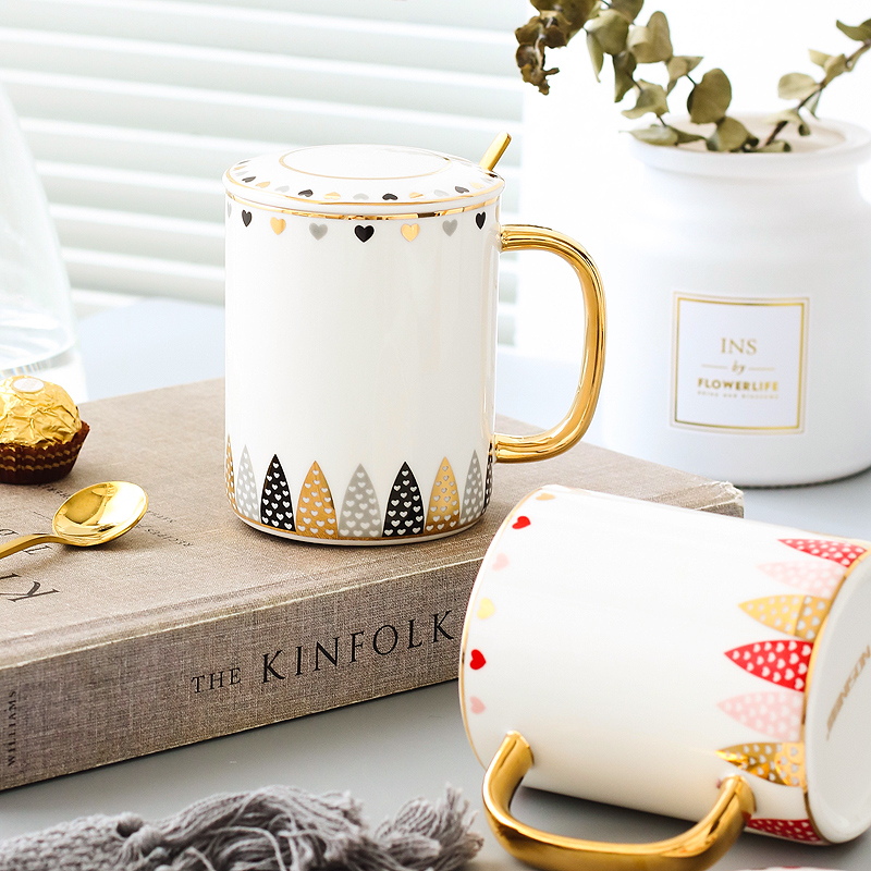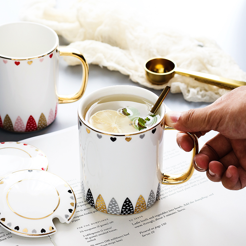 ins creative ceramic mark cup lovers for cup brief gold water cup cup coffee cup women office mug with lid-Taobao