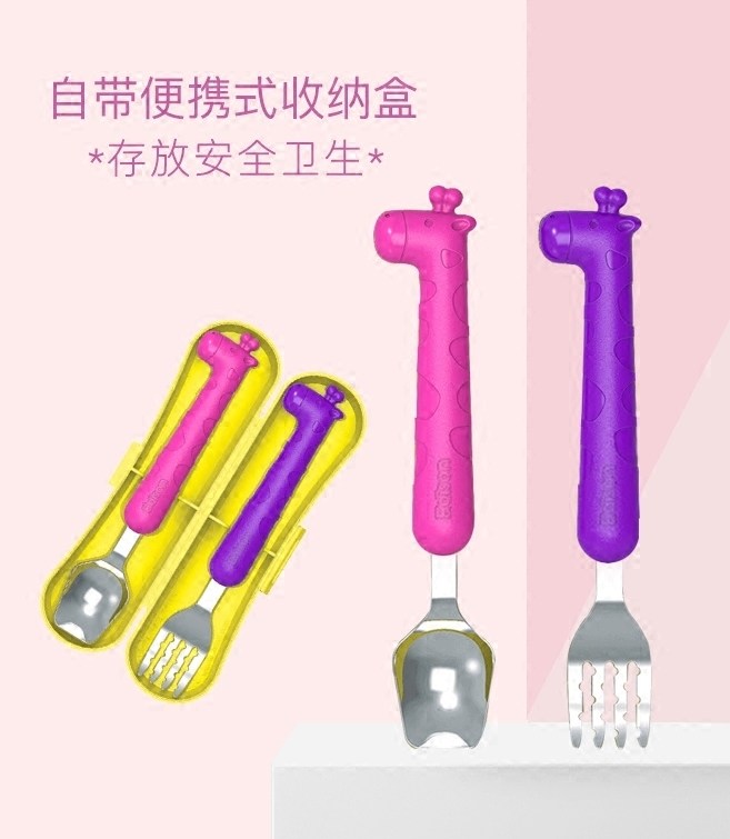 South Korea Edison Edison stainless steel children's tableware safety training fork spoon baby fork spoon set