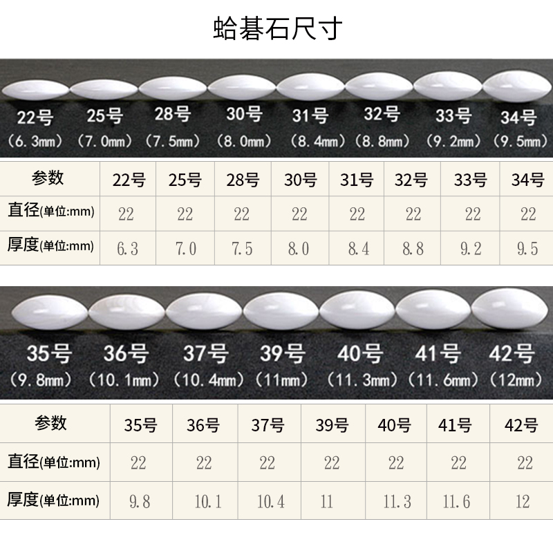 Japanese Go clam Chess Yan Elects Snow Inch 22 ~ 39 Complement Shells GO MOON PRINTED WHITE SUB LOOSE SUBS SPARE SUBS