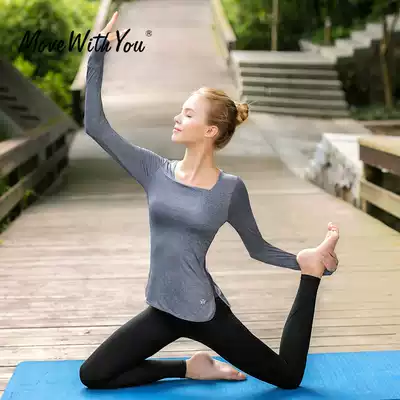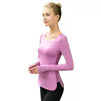 Yoga sports T-shirt women's autumn long-sleeved tight top with chest pad Large size slim gym yoga suit top