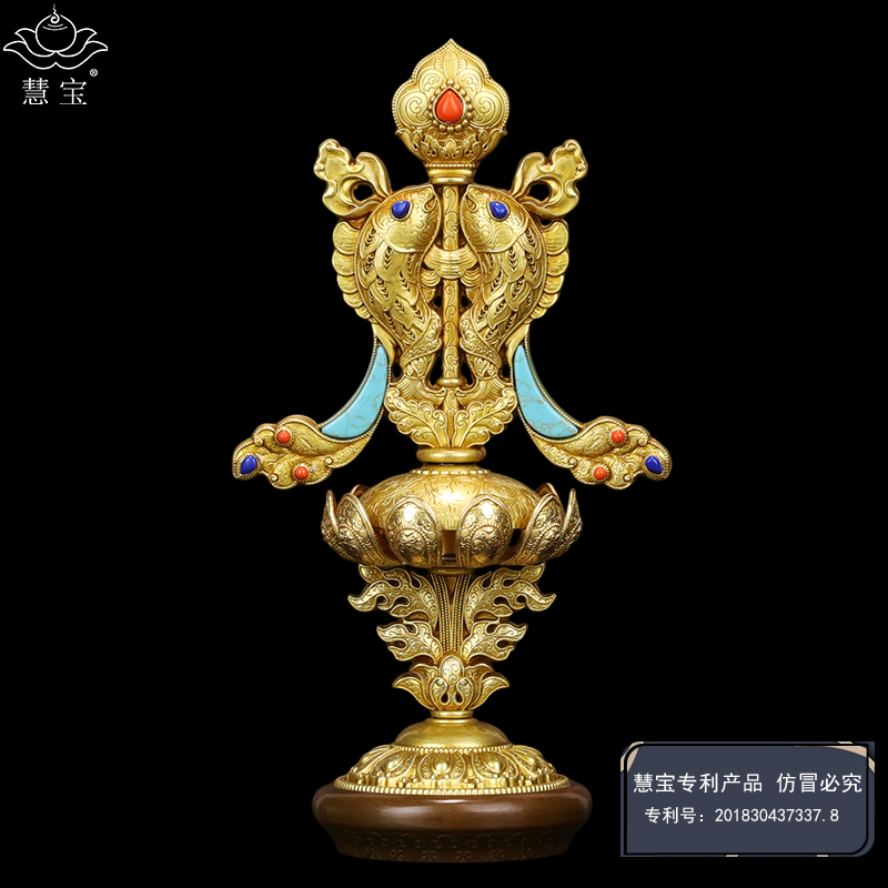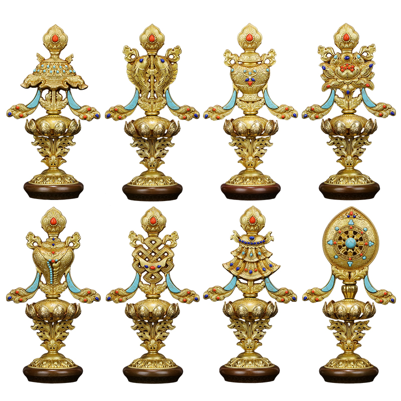 Huibao patent New Eight auspicious B type small brass refined Tibetan Buddhist offering instruments Auspicious Eight Treasures