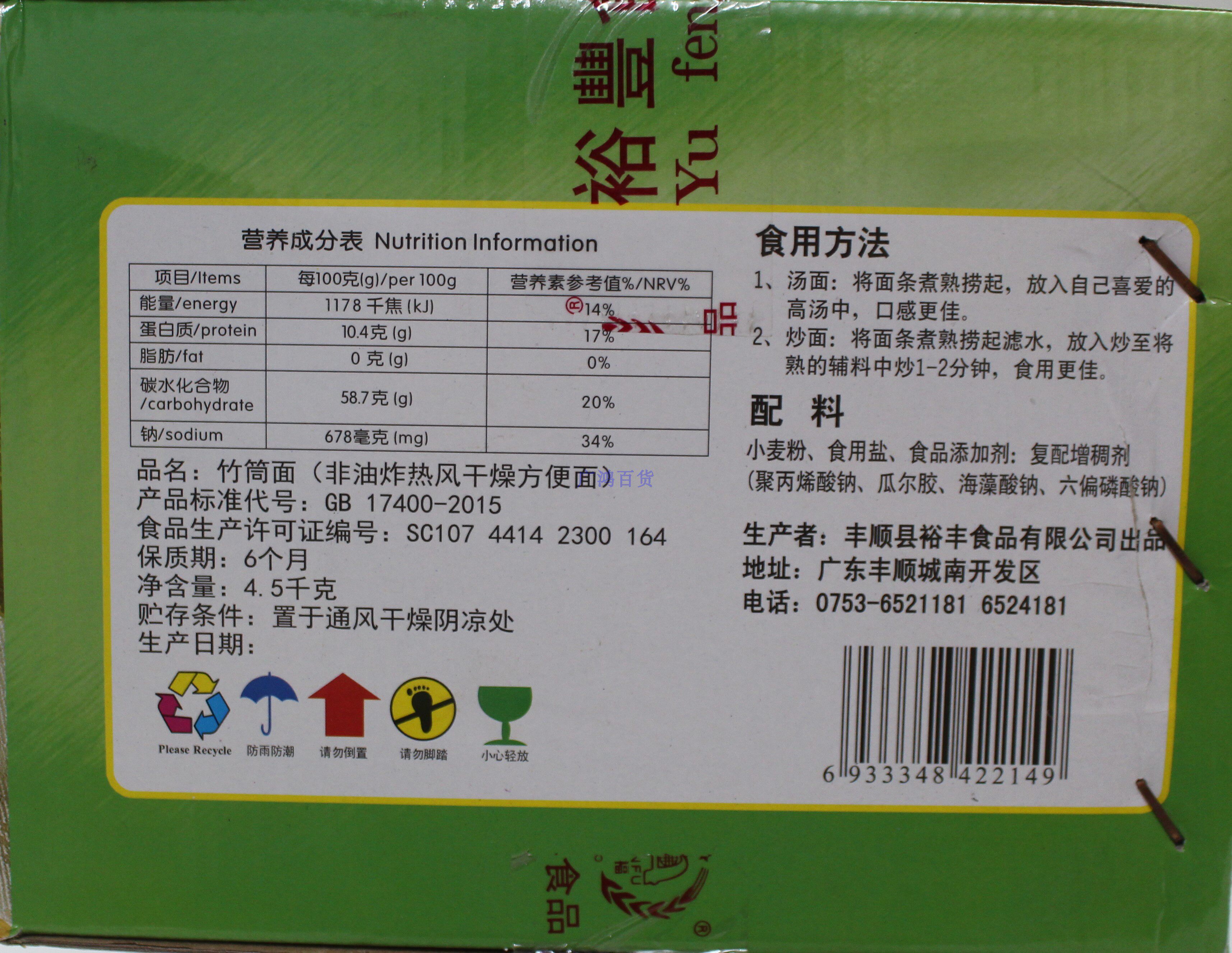 Yufeng 9kg bamboo tube noodles non-fried hot pot noodles corrugated noodles malatang noodles bulk whole box noodles