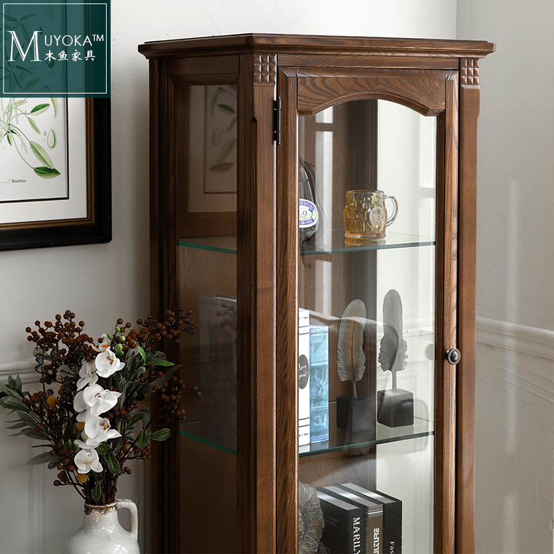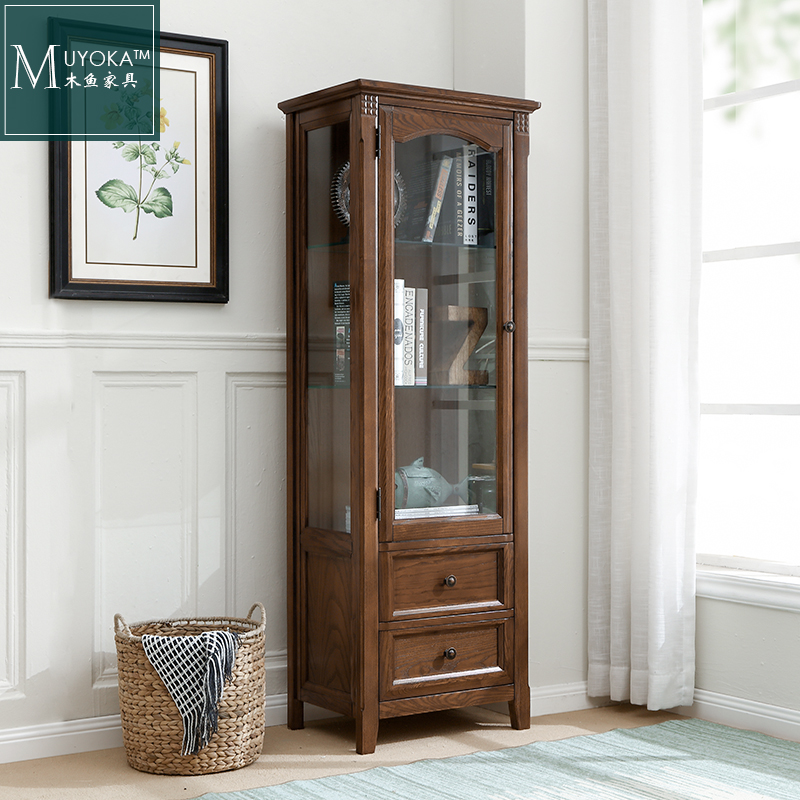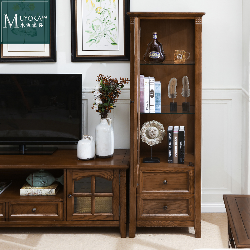 American Countryside White Wax Wood Living Room High Side Cabinet Wine Cabinet Hardwood Glass Door Locker Dining Side Cabinet Living Room-Taobao