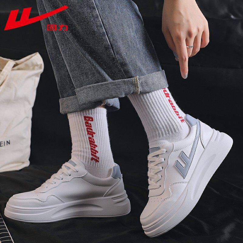 Small white shoes female spring new thick sole leather pine shoes cherry blossom breathable air force 1 plate shoes woman