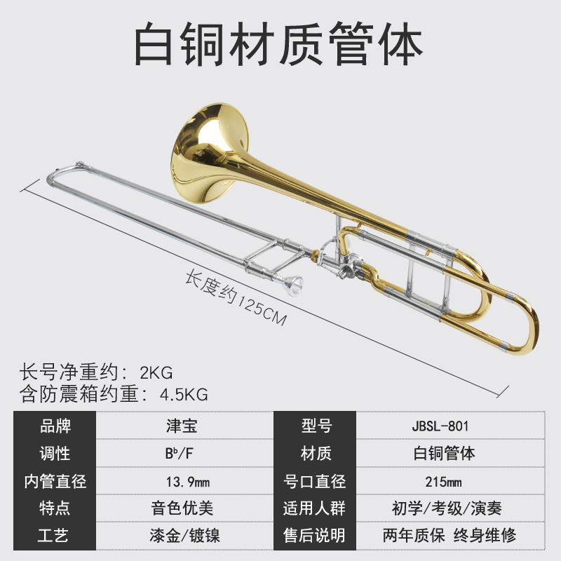Jinbao JBSL-801 tenor trombone down B- turn F tune trombone instrument white copper pull tube playing instrument