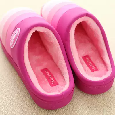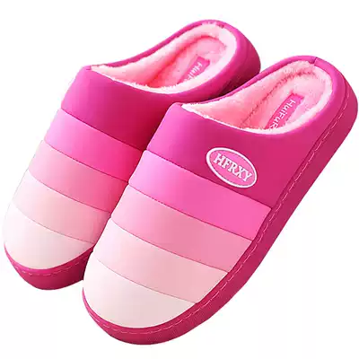 Winter cotton slippers men's and women's waterproof PU leather noodles mother kitchen old man hair plush warm indoor thick bottom non-slip