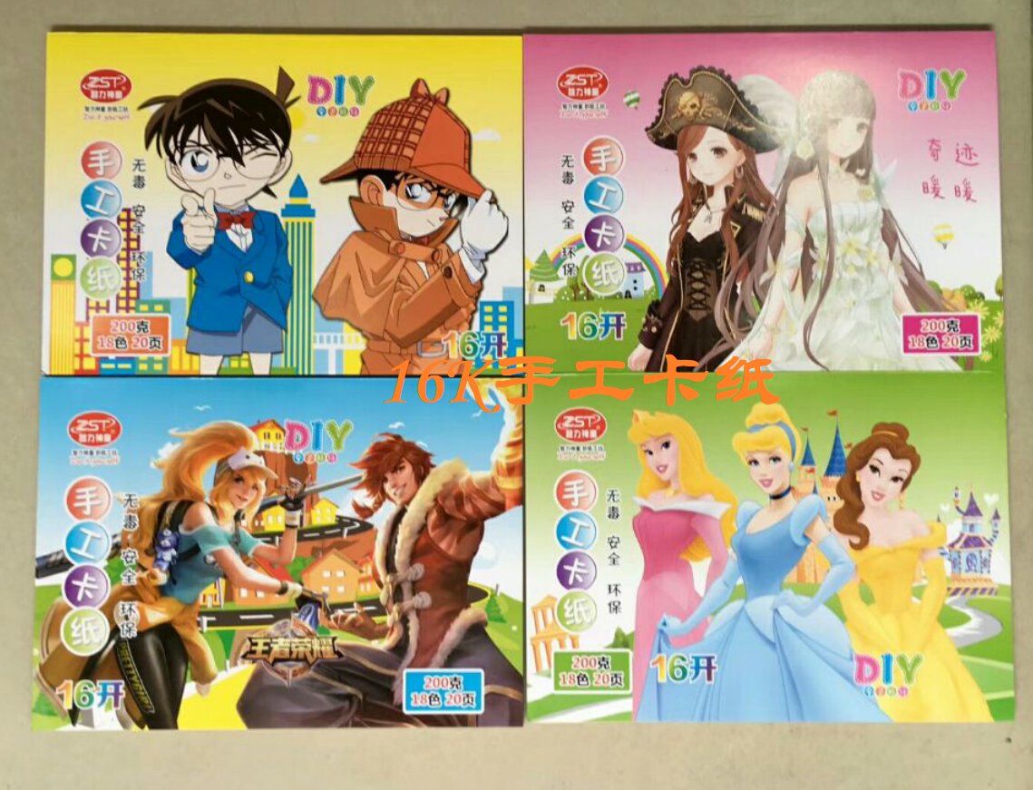 Intellectual prodigy 16 open 8KA4 cardboard cartoon hard cardboard 18 color handmade color paper 10 scissors 1