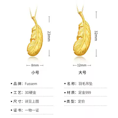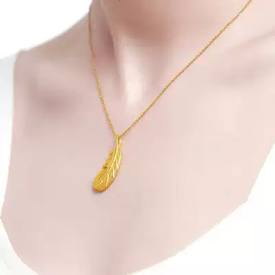 Gold feather pendant small about 1 1g (with gold-plated necklace) Gold feather pendant small about 1 1g(with 18K gold O-chain) Gold feather pendant large