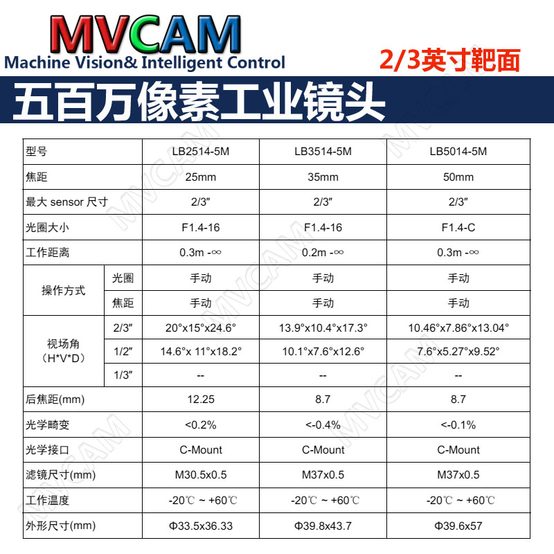 Focal length 50mm LB5014-5M