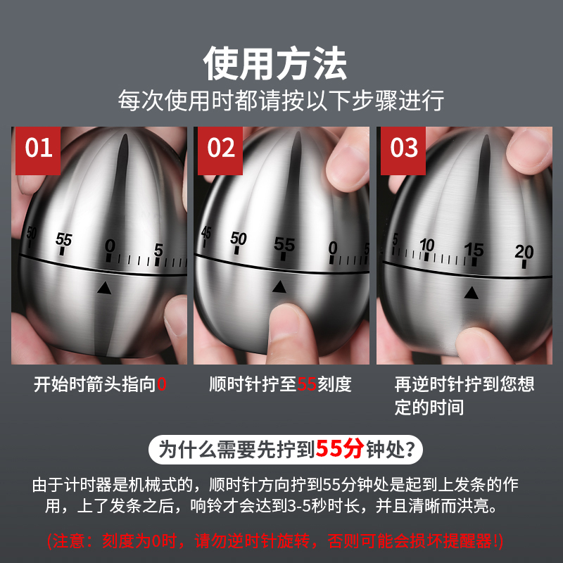 Aimino 304 Stainless Steel Kitchen Timer Reminder Mechanical Timer Countdown Student Time Management