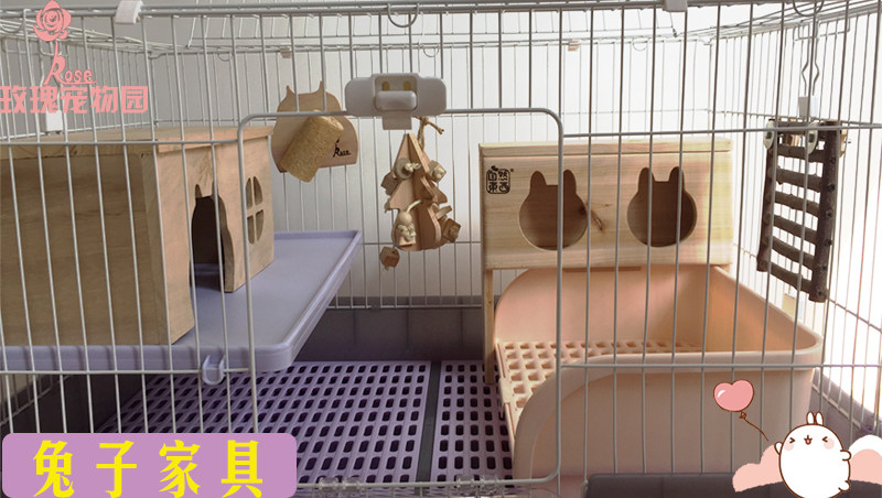 Wooden house rabbit nibbling on board dodging the house grinding tooth supplies dragon cat Dutch pig small darling house wood grass frame cage interior decoration