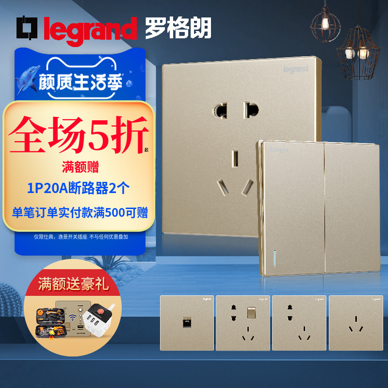 Legrand switch socket panel official flagship store legrand Shi Dian oblique five-hole 5 Milan gold tcl switch