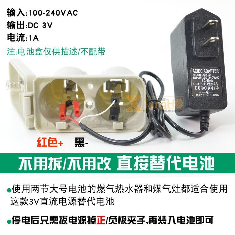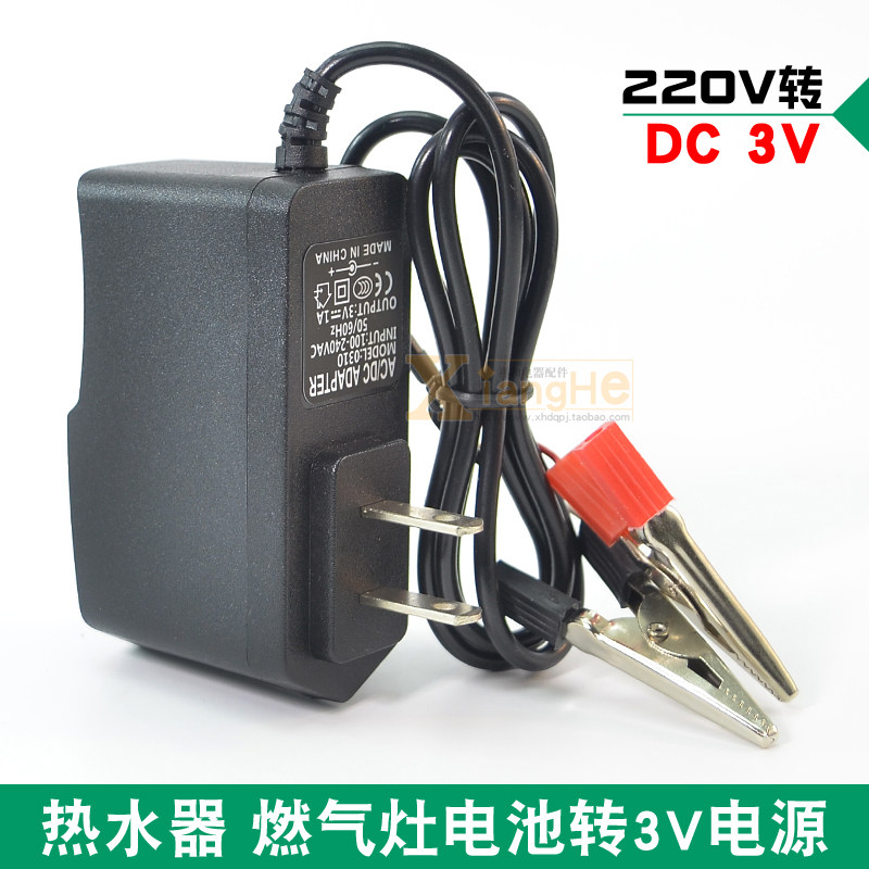 Gas stove water heater with DC 3V power supply instead of battery 220V to 3V1A adapter converter