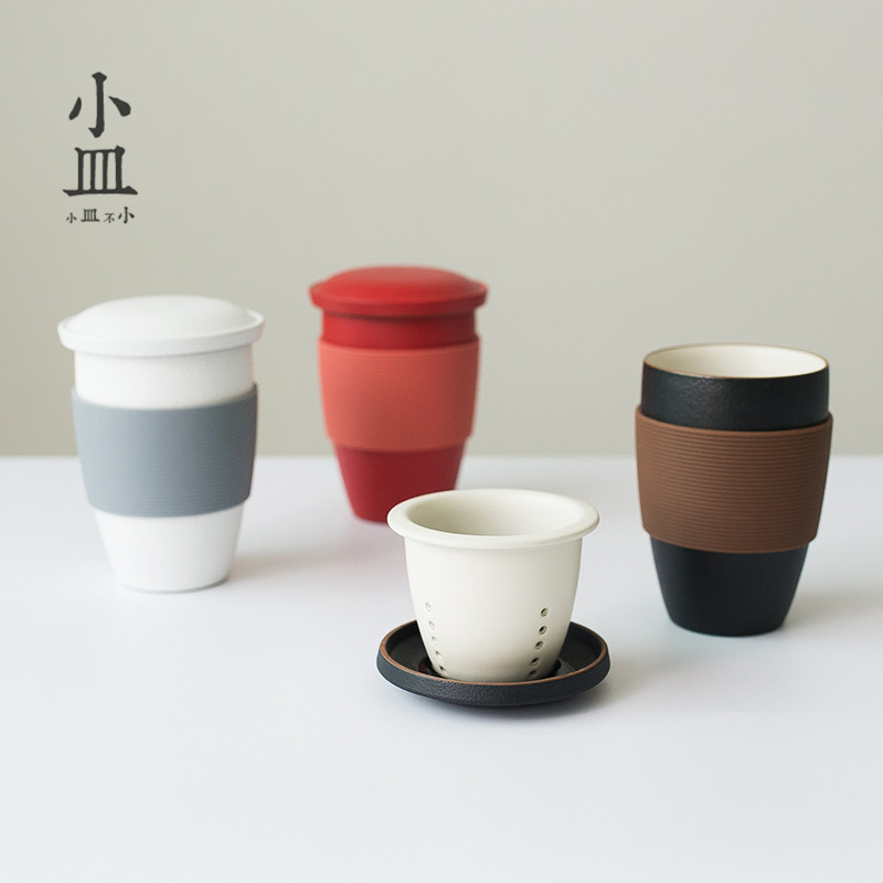 Small cuvette tea cup ceramic tea water separation with filter screen Water cup Office men and women Mark cup lettering customized