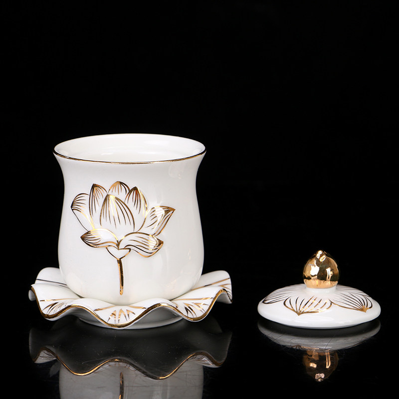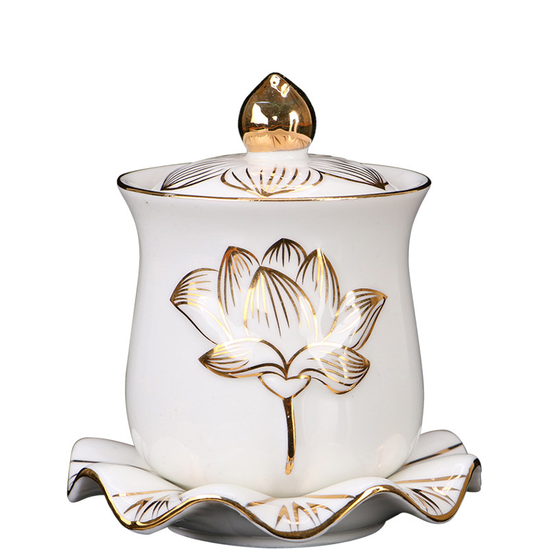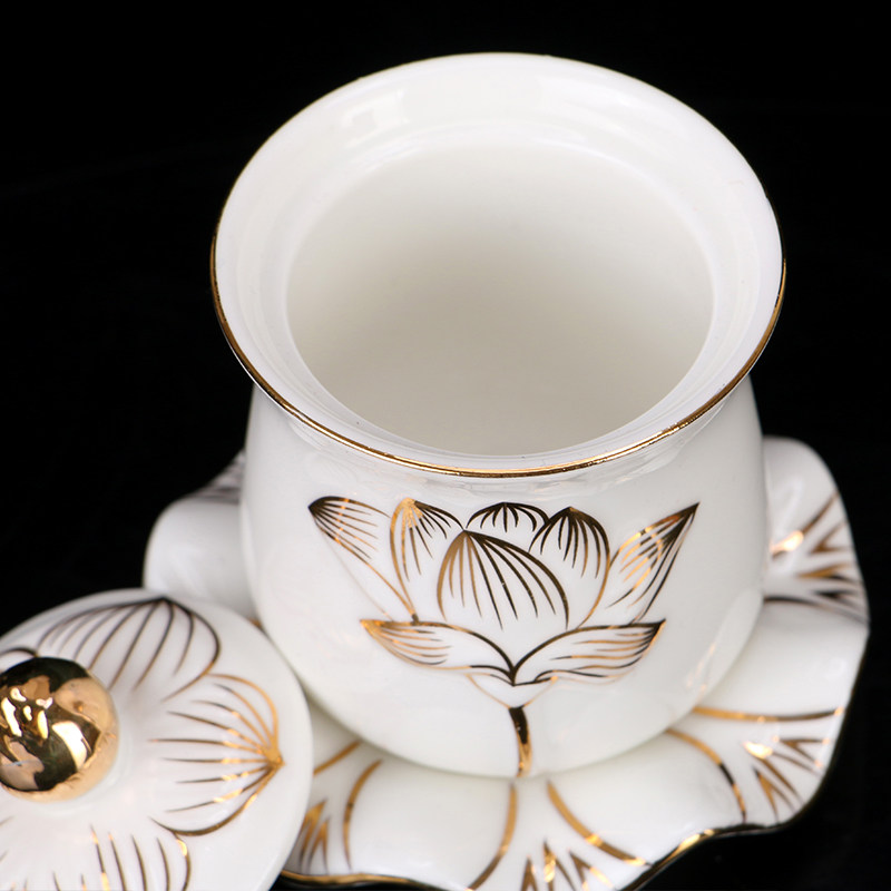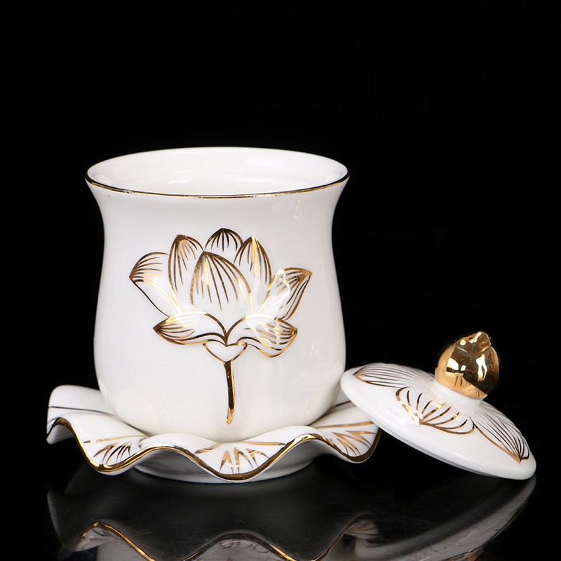 Qin Ge Ceramics Bracing Gold Lotus Holy Water Cup for Buddha Cup Home Guanyin Great Compassion Water Cup for Buddha