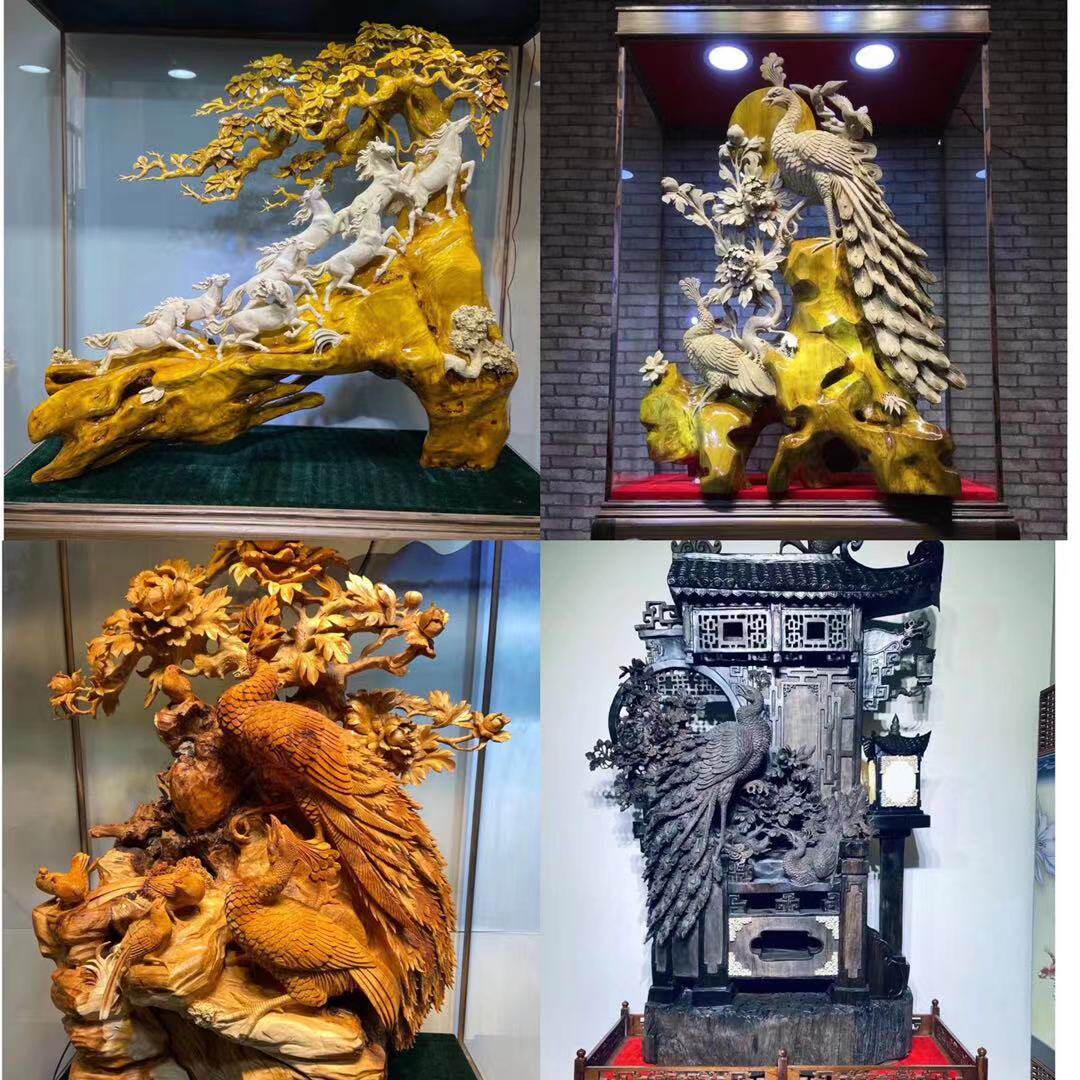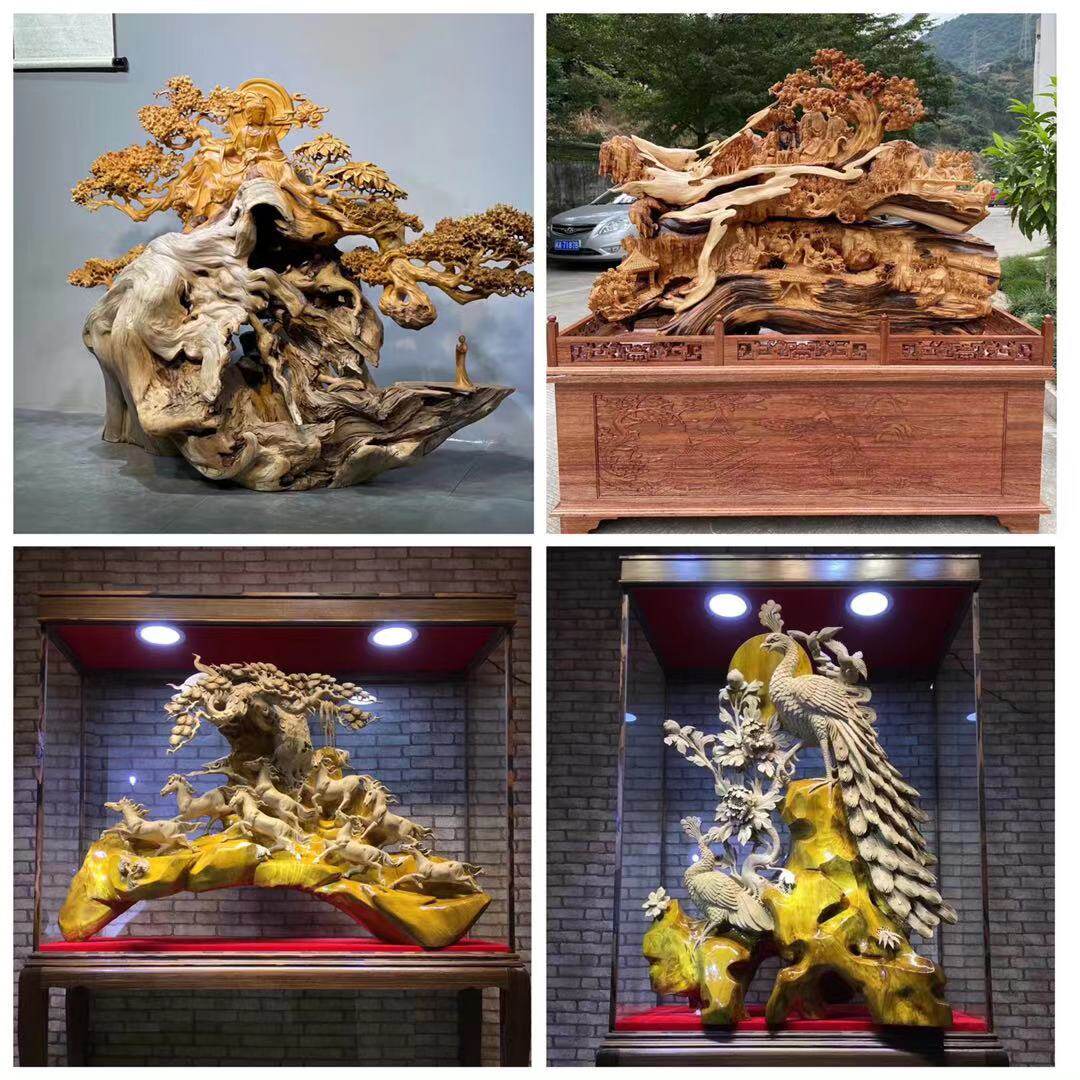 Cliff Cypress carved ornaments aged with type ebony golden silk Nan beauty living room large natural original ecological Taihang wood carving